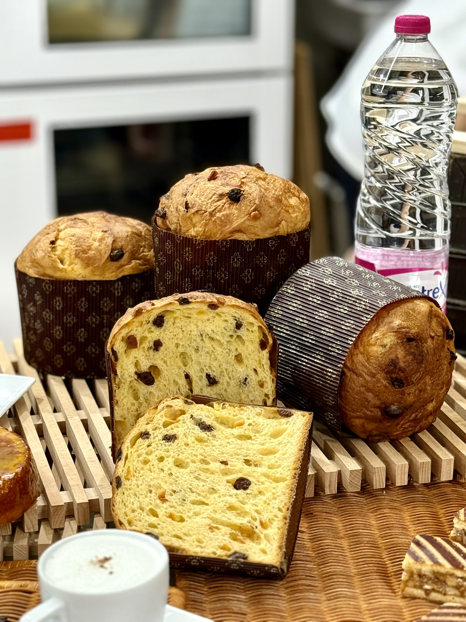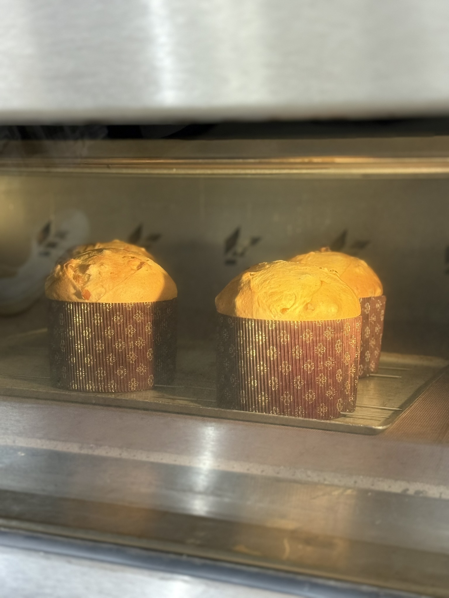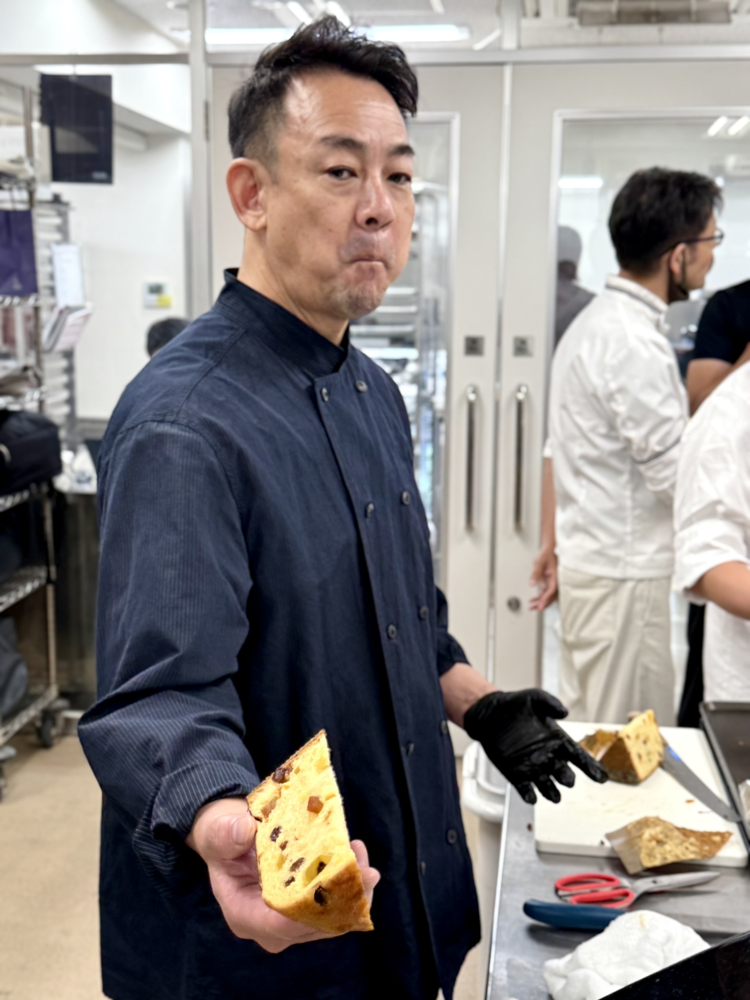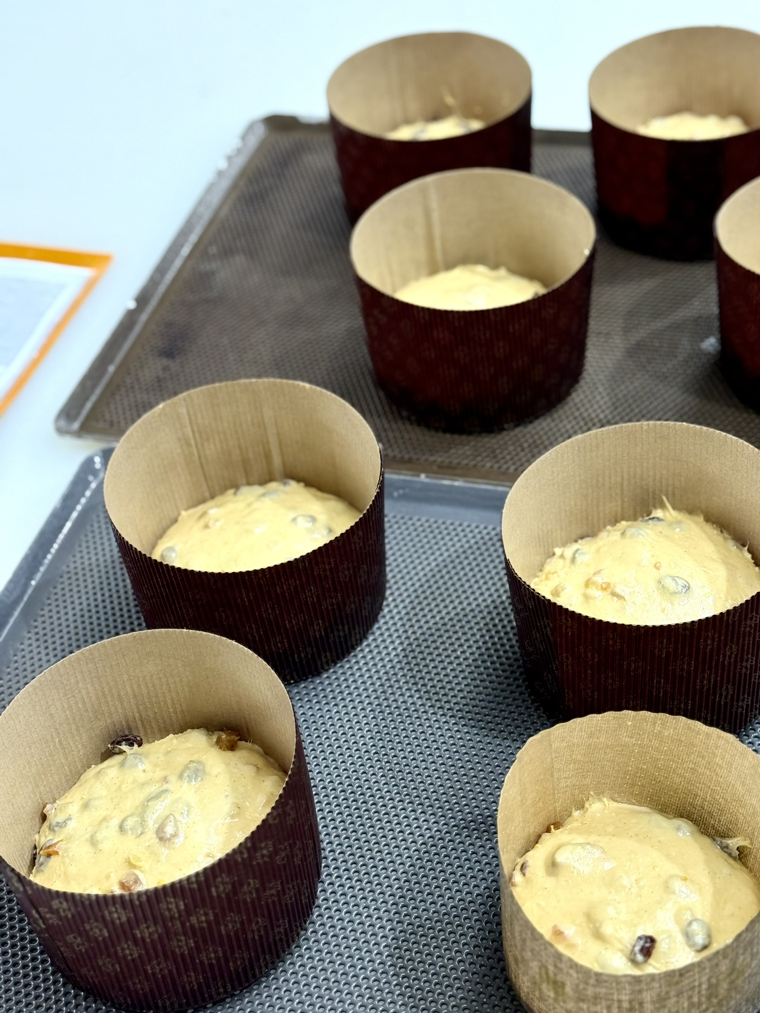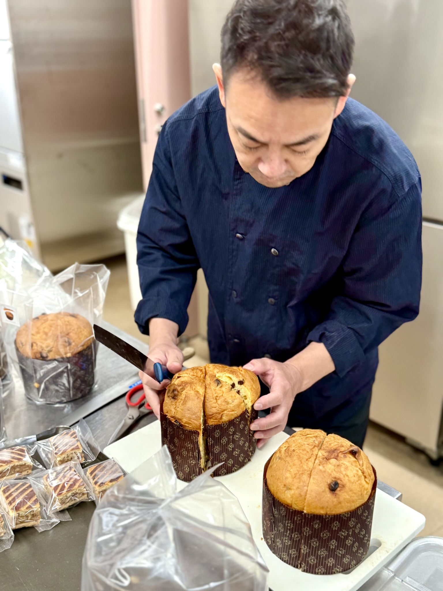 焼成前からパネトーネカップに串を刺すのも野口流で