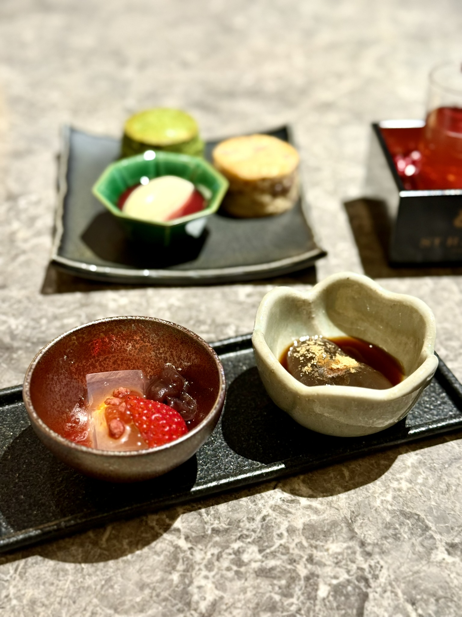 苺の酸味と黒蜜のコクが軽やかに響き合う一品。