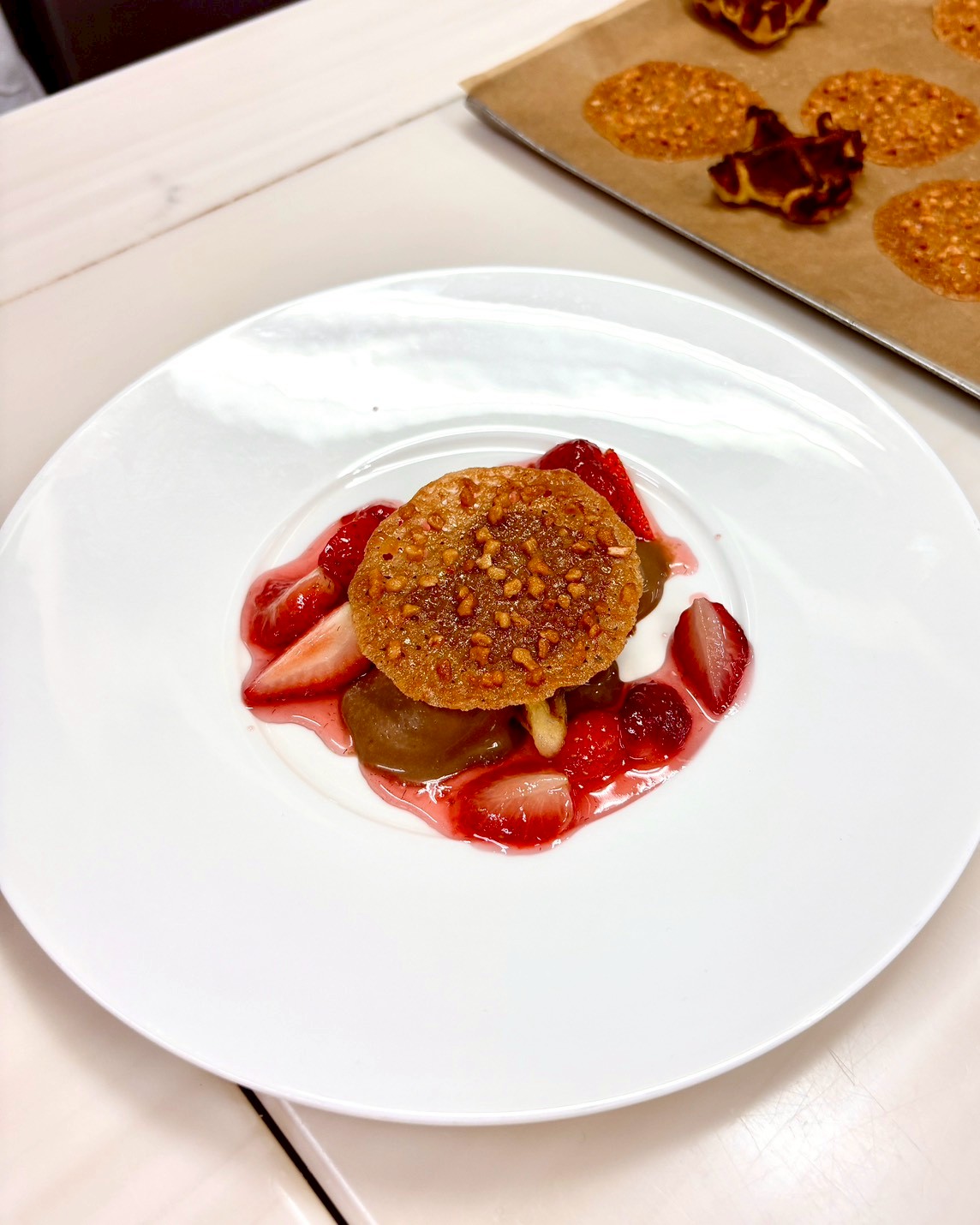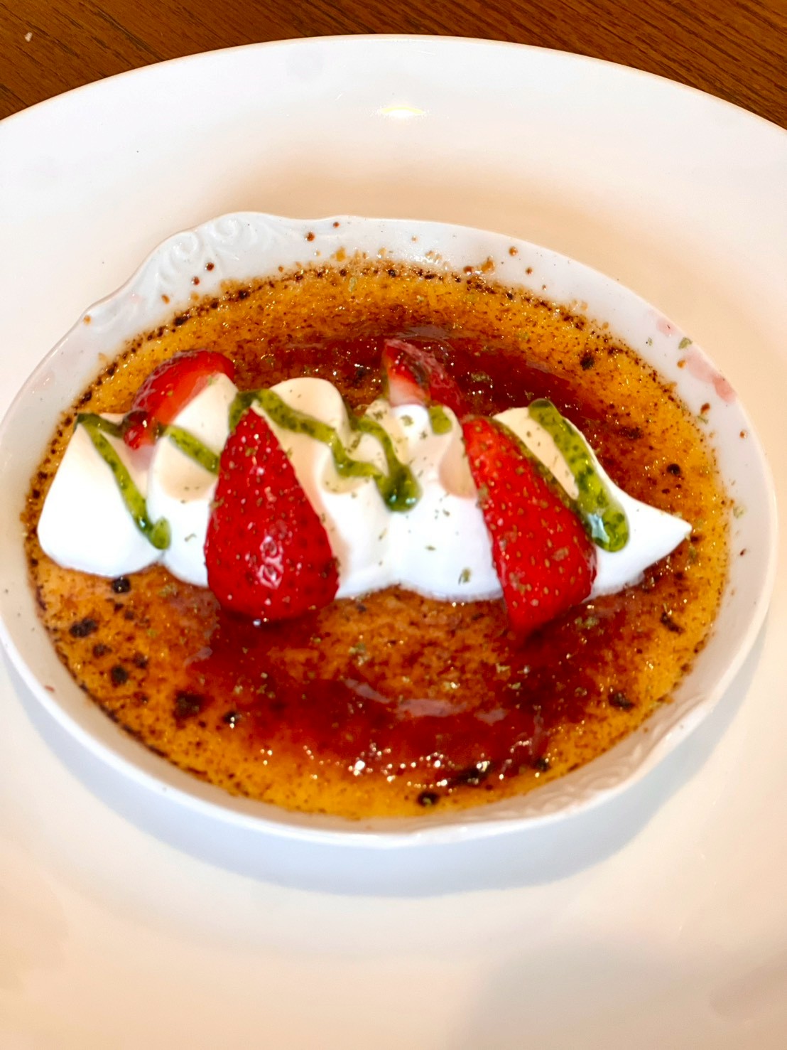 いちごを散りばめたクレームブリュレバニーユ