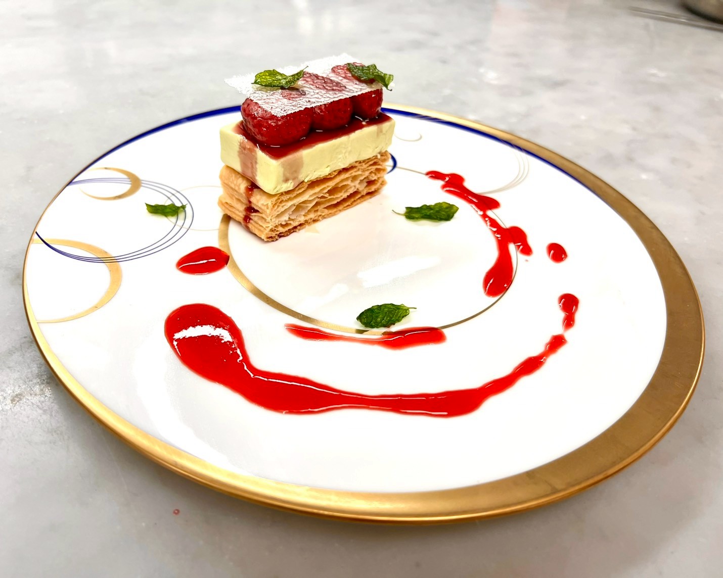 いちごの赤ワイン煮 ミントと山椒のパルフェ