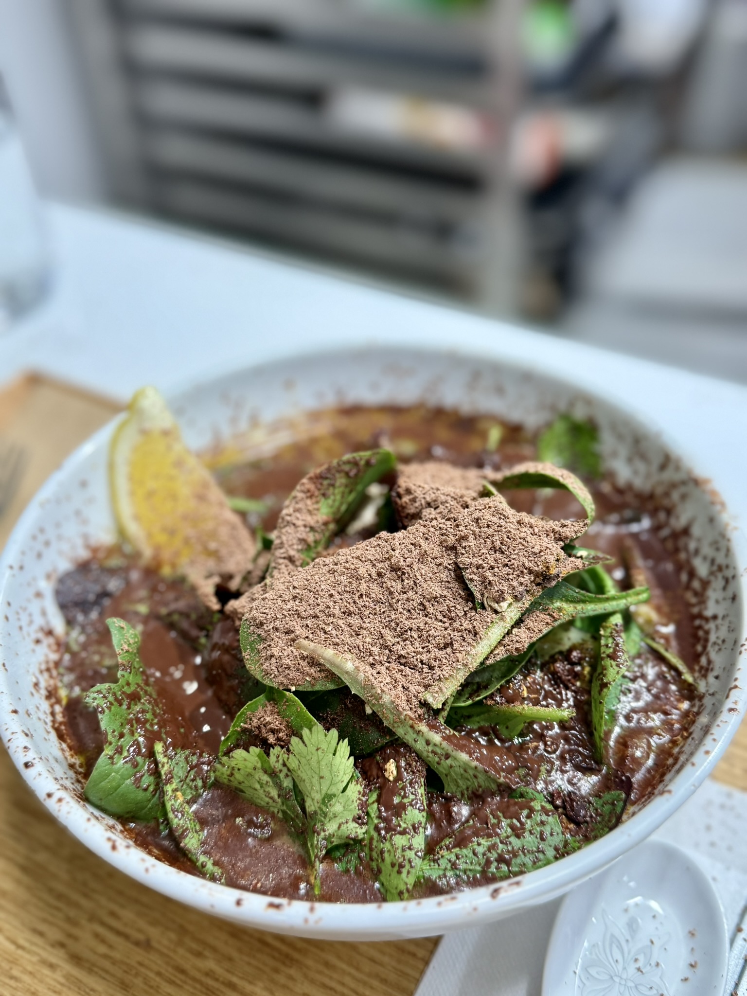 スープにカカオが溶けだして徐々にコクが加わります🍜